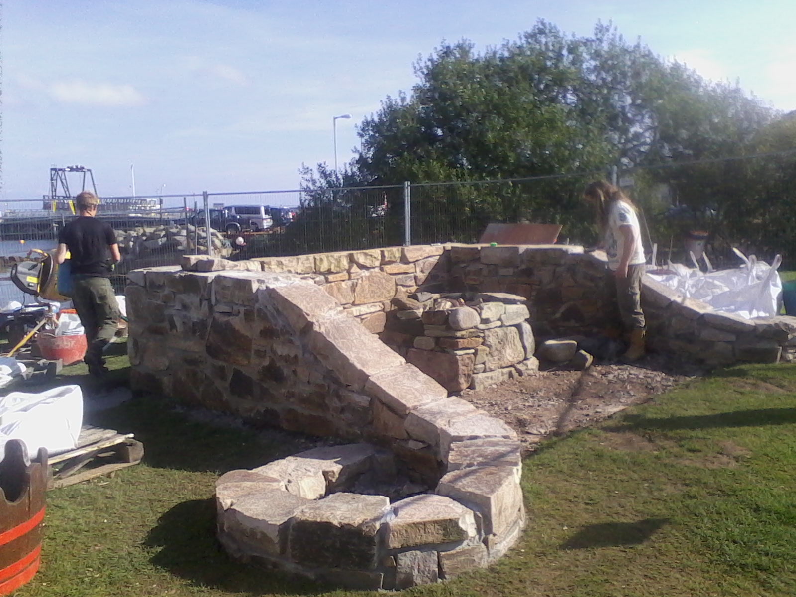 Preparations for the start / finish monument for the Arran Coastal Way are progressing well. In order to ecure a prime location on the seafront just near the ferry terminal, we are amending an existing flowerbed and siting the monument in its centre.